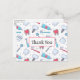 Thank You postcard with a dental themed pattern. Featuring colourful illustrations of teeth, toothbrushes, and various dental tools.