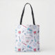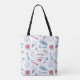 Tote bag with a dental themed pattern. Featuring colourful illustrations of teeth, toothbrushes, and various dental tools.