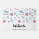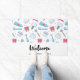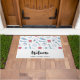 A welcome doormat with a dental themed pattern. Featuring colourful illustrations of teeth, toothbrushes, and various dental tools.