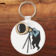 You can look way off into the distance with a telescope. Now you can show off a telescope with this great design of a telescope that looks really cool on a wide range of products. This telescope design is looking from the front to back of the telescope and someone is crouching down looking into it. This telescope looks great on this keychain. Perfect for yourself or as a gift