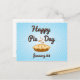 Celebrate Pie Day, January 23, tasty American national holiday, eat a fresh baked sweet dessert treat, bright blue ray pattern background. Customise the text for your postcard.