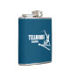 The flask itself is fine. It’s a cheap flask, obviously bought in bulk, however am prepared to overlook that. Given that it is a personalized item, I would have liked to have seen gift boxing instead of the generic packaging. Terrible printing, and/or quality. It’s a cheap, tacky vinyl. It is not cut straight and is also applied in a way that it is overhanging the bottom, causing the glue to catch on items and it will eventually roll and tear, damaging the wrap.