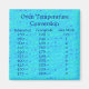 This magent is pretty and useful. It features a background that is blue with abstract circles on it. There is a temperature conversion from Fahrenheit to Centigrade to Gas Mark and back again. Perfect for anyone who has a cook book from a different country or someone who has moved to another country!