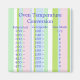 This magent is pretty and useful. It features a background of pastel stripes in colours of pink, green, blue, and white. There is a temperature conversion from Fahrenheit to Centigrade to Gas Mark and back again. Perfect for anyone who has a cook book from a different country or someone who has moved to another country!