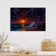 A blaze of sunset ruptures the storm—golden light colliding with wind-torn palms and crashing surf. In this moment of elemental tension, nature is both violent and sublime. The swirling clouds, rendered in bruised reds and purples, echo the emotional turbulence beneath the surface. Waves rise like breath held too long, and the beach glows with the last embers of day. This piece invites viewers to stand in the eye of beauty and chaos, where endings burn brightest.
