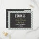 Cute Couples Shower invitation with cool pattern and dark grey modern chevron background.