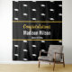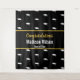 This black photo backdrop has a pattern of white graduate's caps in the background. In the center, there's display text you can personalize with a custom message, the graduate's name. and the class of year. The faux gold script is an artistic rendering (it's not foil).
