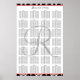 Template Damask Wedding Seating Plan Poster for maximum of 280 people with 28 tables of 10 people or less. . Switch out the "names" text for your guests names. Number your tables from top left in columns towards the right bottom. Change your colours, monogram and bride and groom names. To align the sets of text for each table highlight the group you want to align and then use the different options under the "arrange" edit function to suite your guest information. Change the font or size if you don't need as many tables. Layout Design by Elke Clarke©. Graphics licensed.