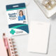 Create your own personalized employee name tags and badges using a vertical modern template that is easy to add your own photo, company logo and other important information to. The sleek design on these professional name badges is geared towards nurses, doctors and other medical staff, but the information and colors can be effortlessly changed to reflect your corporate brand or business.