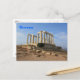 Beautiful postcard of Greece showing a photograph of the ruins of the ancient Temple of Poseidon, god of the sea in Greek mythology, on Cape Sounion in Attika, Greece.