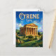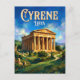 This painting-like illustration captures the Temple of Zeus with its vibrant colours and expressive gestures, emphasizing the vertical lines of its towering columns amidst the rolling green landscape of the Jebel Akhdar. The bold shapes and saturated colours, with strong contrasting light and glowing highlights, create an artistic and modern impressionist blend. The centred temple is a powerful subject against a dynamic sky, reflecting the sense of history and natural beauty in this corner of ancient Cyrenaica.