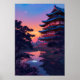 Immerse yourself in the tranquil beauty of a Japanese temple nestled by a glistening lake. As the sun sets on the horizon, the sky transforms into a canvas of warm hues, casting a soft glow over the peaceful scene. The temple's traditional architecture and the surrounding nature complement each other in perfect harmony, creating a serene oasis that soothes the soul. Let the gentle ripples of the water and the rustling of the leaves calm your mind and transport you to a place of serenity.