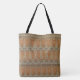 Large all-over-print brushed polyester tote bag with an image of an intricate charcoal, brown, and orange design. See the entire Bali Retreat Tote Bag collection in the PARTY FAVORS section.