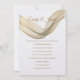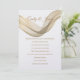 This wedding invitation is shown in a classic layout on a White background shown in a paper choice of Peal Shimmer paper. Select your choice paper. Graphic of Gold sheer veil draped across the top front . Couple's Names mingle with the veil graphic in a Golden-colour at top. Body text shown in Golden-colour beneath the veil drape. Customise this item by taking the sample text and putting your information in it instead.