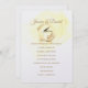 This wedding invitation is shown in a classic layout on a White background shown in a paper choice of Peal Shimmer paper. Select your choice paper. Graphic of a barely-there White rose in centre with Two rings. Couple's Names highlighted in a Golden-colour at top. Body text shown in Golden-colour beneath the rose. Customise this item by taking the sample text and putting your information in it instead.