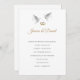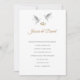 This wedding invitation is shown in a classic layout on a White background with a matte paper choice. Select your choice of paper. Graphic of Two White and Silver-Grey coloured Doves with Two Golden coloured rings at top. Couple's Names highlighted in a Golden-colour. Body text shown in Silver-Grey colour. Customise this item by taking the sample text and putting your information in it instead.