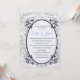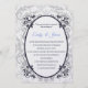 Shown in an ever popular Pearl shimmer, this invite has a Pastel Silver-Grey Coronation pattern printed in the background on the front and on the back. A dark Sapphire Oval with fancy leaf-vine work frames the text inside. Bride and Groom's names are highlighted in a soft Blue. Body of text shown in deep Sapphire Blue. Choose your paper choice and customise from their if desired.