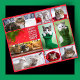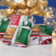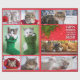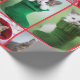 Ten cat photos on wrapping paper, arranged in a Christmassy collage with red borders.