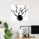 Simple black and white illustration of ten pin bowling skittles being knocked down by a bowling ball. Easily customise and choose your own background colour. Image available on various gifts and products.
