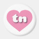 This magnet features a vibrant pink heart containing the bold, rounded lower case letters tn, a playful abbreviation for Tennessee, the volunteer state.