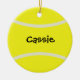 Tennis ball ornament can be customised with team name, player name, or any text. Great gifts for tennis players or coach at Christmas or any holiday. Personalise with your text on both sides or text can be removed. Use year round for fan pulls, pendants, or hang on car mirrors. Be creative!