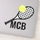 Personalised Monogram Initials Contour Cut Sticker with Tennis Racket and Ball Design available in several sizes for your laptop, water bottle, sticker collection, car, or as favours and gifts for a tennis birthday party.