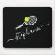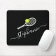 Custom Mousepad with an elegant tennis racket and ball monogram features an elegant script font name and simple tennis logo you can customise for a tennis coach or player on your team.