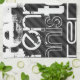 Tennis; Black & Dark Grey Stripes Tea Towel