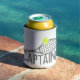Personalised Tennis Captain Can Cooler with a modern and fun design and custom text on the back for a year, name, or tennis team name, perfect for a school, college, or intramural team tennis captain to keep drinks cold. Change the background and all colours to create a matching gift set of other items from the Paper Grape Designer Store.