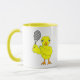 A yellow chick holding a tennis racket and ball is a funny gift design for tennis instructors and players.