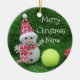 Tennis Christmas with Snowman and Santa Claus Ceramic Ornament