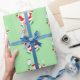 Fun tennis Christmas holiday gift wrap or party decoration featuring Santa tennis player.