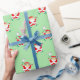 Creative tennis Christmas holiday gift wrap or party decoration featuring Santa and Mrs. Claus tennis players.