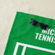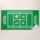 LOVE tennis court beach towel gift for coach or player. Cute personalized beachtowel for him or her. Make your own fun towel for pool, beach or sports. Humorous present for tennis player, coach, sports trainer, teacher, instructor, kids, retired person, friends, family, girl, boy, teenager, retired colleague, husband or wife, wedding couple, bride and groom etc. Customizable in different colors. Green and white color example. Bold typography template with yellow tennis ball logo. Add your own name, funny quote or saying.