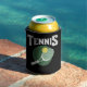 Retro style grunge "Tennis" text design with yellow and green tennis balls and racket decoration