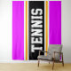 This sporty, athletic design features bold TENNIS text inside a highlighted wide black stripe with double white and yellow racing stripes against bright tropical pink outer stripes. The text in this design can be personalised.