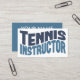 A bold Tennis teacher business card that says "Tennis Instructor" in shades of blue. Feel free to change the background colours to anything you like.