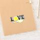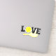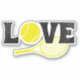 Retro style grunge "Love" text design with yellow tennis ball and racket decoration
