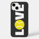 Tennis love iPhone 14 case cover with ball design. Yellow tennis ball gifts for tennis players and fans. Add your own text like a funny slogan, quote, joke, saying or name.