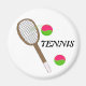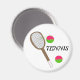A fun design for the tennis player. A tennis racquet and two tennis balls in pink and green.