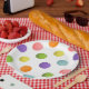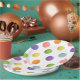 Creative tennis party or team event plates featuring colourful festive tennis ball pattern.