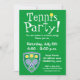 Tennis party invitations for kids Birthday or BBQ etc. Personalizable text and background colour. Back side of the invite has a polka dot tennis ball pattern but that can be deleted for more text space. Invite players, coach and fans.
