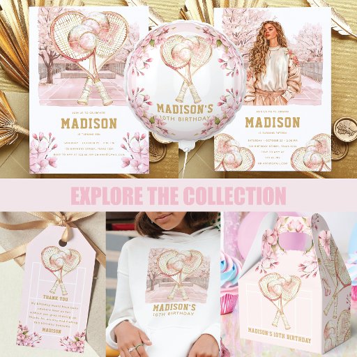 Tennis Luxury Girl Birthday Pink Gold design. Matching products can be found in Luxury Tennis Birthday collection.