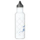 Royal navy blue and white personalised stainless steel water bottle with a tennis racket monogram in an elegant and cute calligraphy script font with a subtle net pattern background.