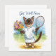 Brighten someone’s day with this thoughtful card featuring a glamourous Siamese cat tennis player holding a bouquet of flowers.