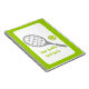 Tennis racket and ball notebook that showcases a grey racket, a green tennis ball and your text on white background with green border. This cool design is a template and it is completely customisable. Personalise it and add the text “Best tennis player” or monogram, name or your message. Some elements courtesy of vectorportal.com.