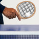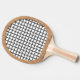 When you feel like playing tennis, but all you have is a table for a court. A wood-rimmed tennis racket design, on a paddle.