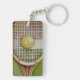 Tennis Racket with Ball Laying on Court Key Ring