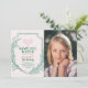 This retro "game, set, match" girl's birthday invitation features a pair of pink racquets surrounded by a botanical frame in green. The reverse side features a green background with white polka dots. Personalise for your needs. You can find more matching products at my store.