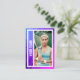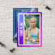 Commemorate your tennis tournament doubles results with this custom trading card. Upload your own tennis player photos to the front and back, and edit the text to enter your name and also your doubles tennis team name, such as Simpson/Johnson, for example. You can also edit the text to enter the name of your tennis tournament, as well as your win/loss record and which place you finished. The front of the card's border is dazzling pink, purple rays. The back of the card has a blue tennis court background with tennis balls and a tennis racket.